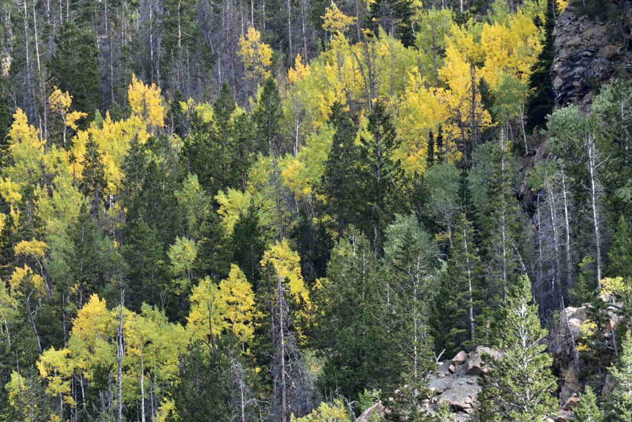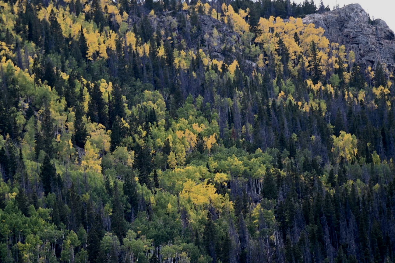 Aspens in color along one of the mountain ridges.
