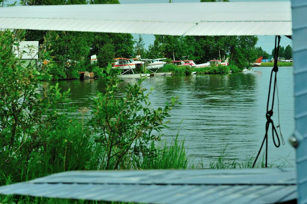 Below are a seaplane from the Anchorage sea plane terminal there. According to a sign, the largest seaplane terminal in the world. Also a grouse we discovered hiding and a bull moose approaching a lake.