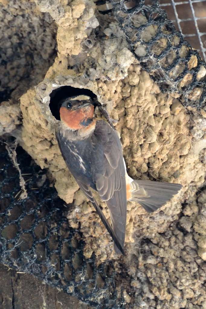Cliff swallow at nest after feeding chicks