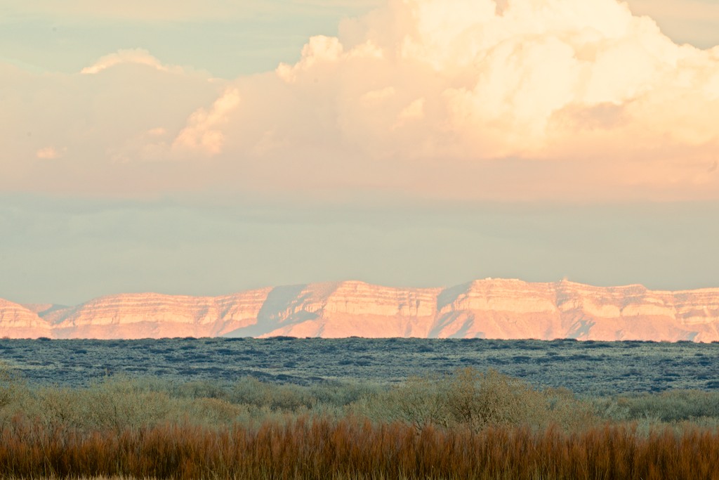 This is a view of the cliffs which are east of Bosque del Apache National Wildlife Refuge as the sun is setting.