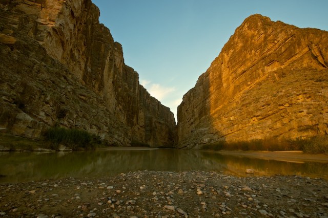 Santa Elena Canyon in the Big Bend National Park. The canyon walls are 1,500 feet tall, the left canyon wall is Mexico, the right is the USA.