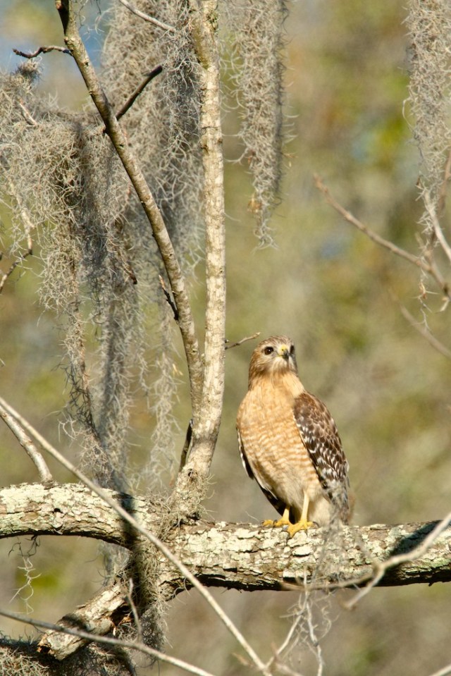 A red-shouldered hawk.