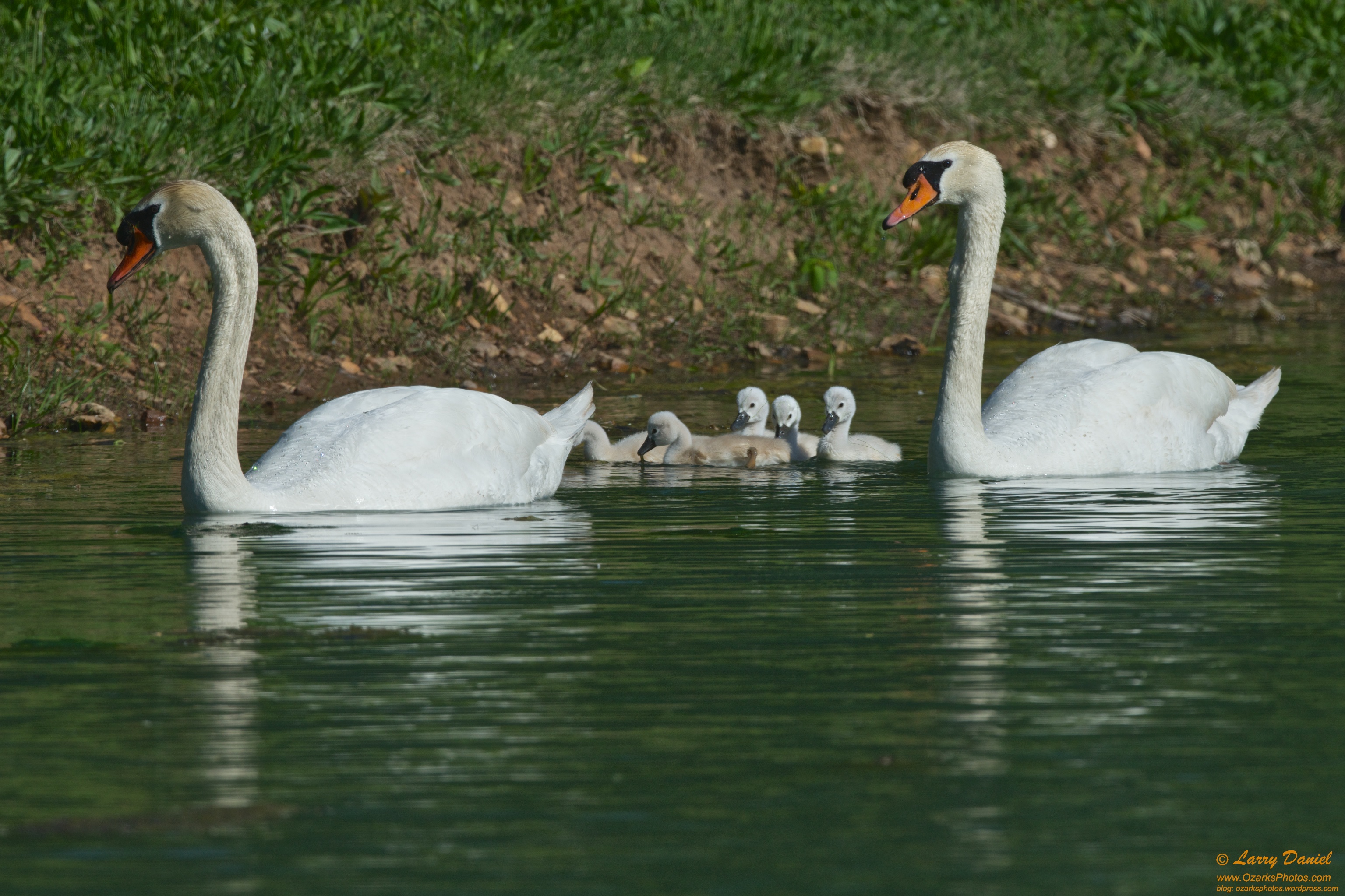 The entire family of mute swans, one was a bit shy. 🙂
