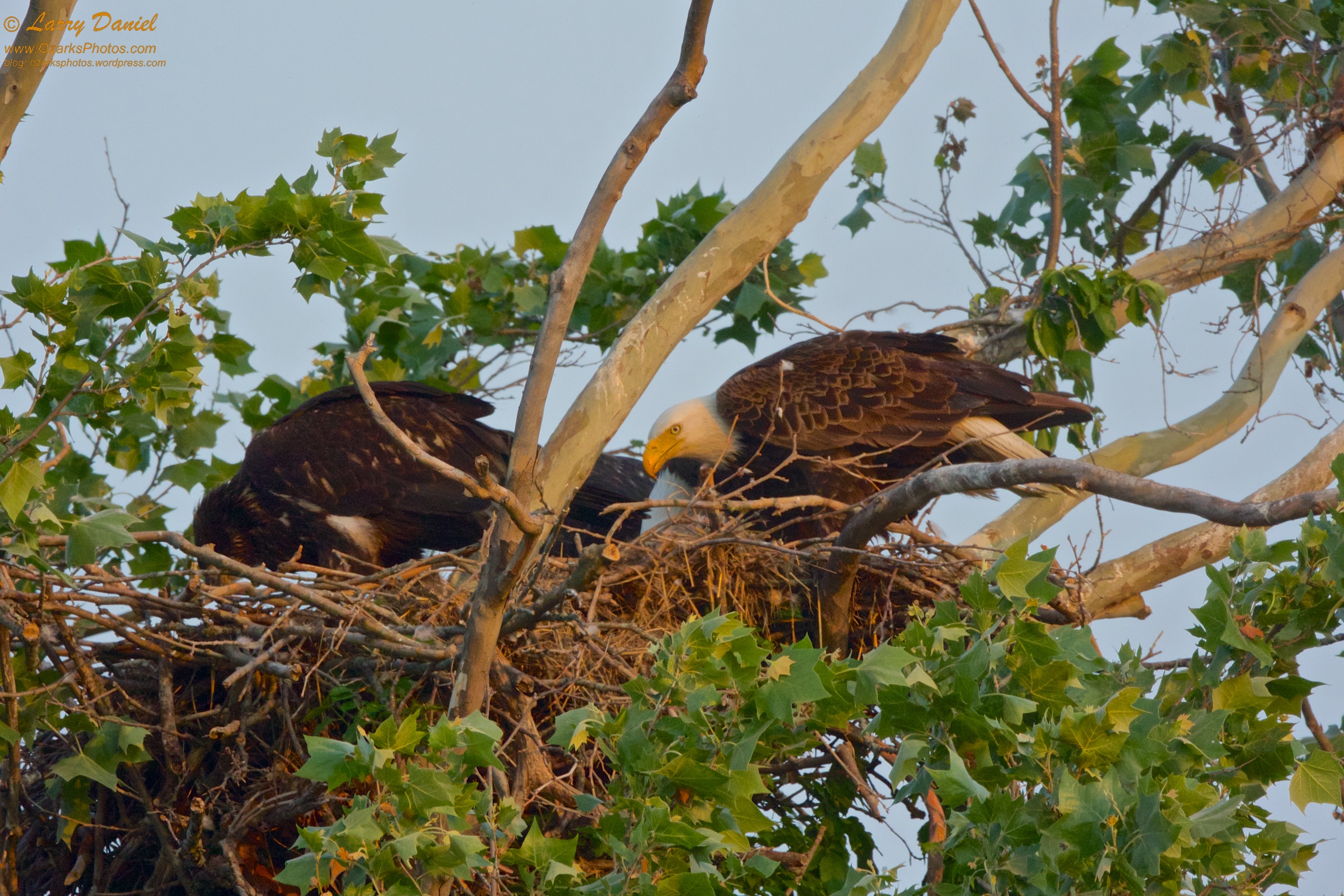 Early morning light and two mature with two immature bald eagles having breakfast near the James River in Missouri. The immatures are almost old enough to fly so the nest will be deserted until next year soon.