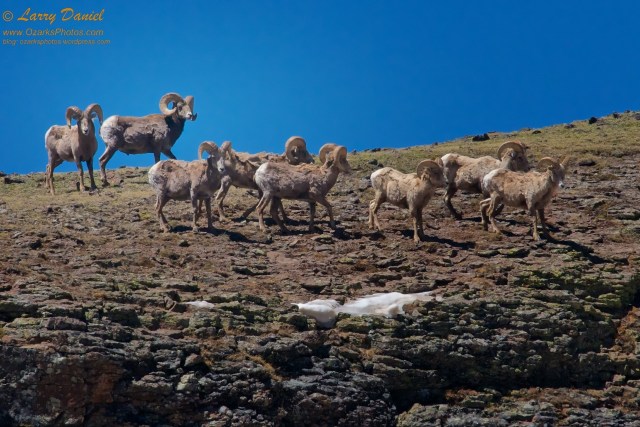This flock of big horn sheep rams well above the timberline at Rocky Mountain National Park. It was exciting to me to get to see this many rams together.