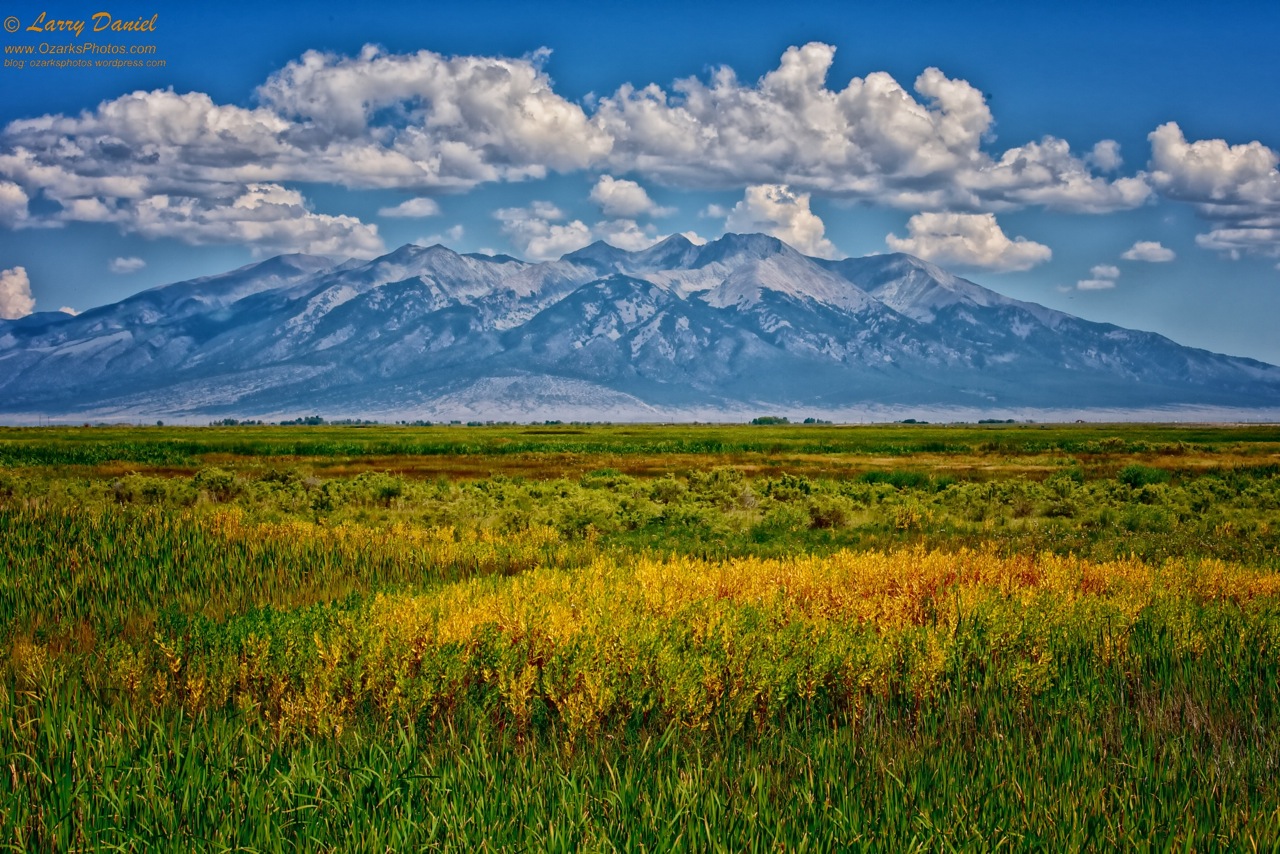 We saw this scene early in our trip. The San Juan Mountains from near Monte Vista, Colorado. We had a nice time during our visit to Colorado even though it rained much of the time. Our destination was altered due to the heavy rains on the front range and we were nearly trapped by them. We were in Boulder when most of the flooding occured and there were only two roads open out of there. We got to the Interstate and after a very lengthy traffic delay on I-70 near Idaho Springs we were able to make it on up to Fraser to join our friends from MO. It was a nice two week trip and we are very happy to be back home.