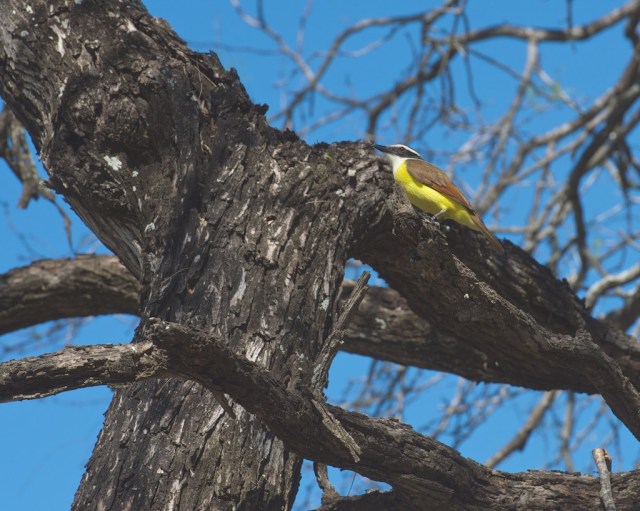 Below is great kiskadee perched in old tree.