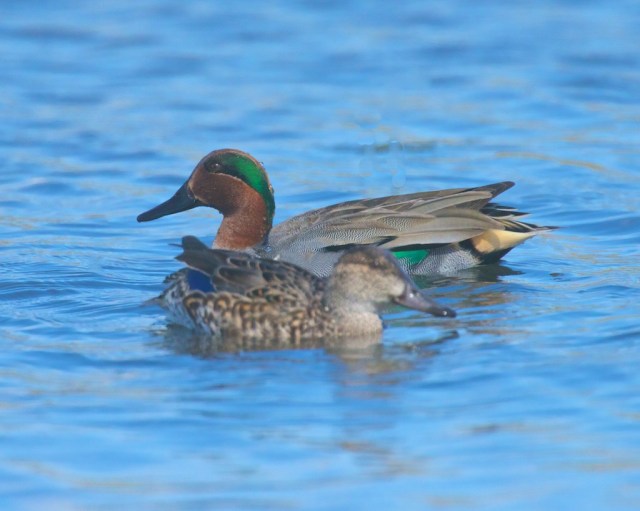 Here is a pair of green-winged teal ducks