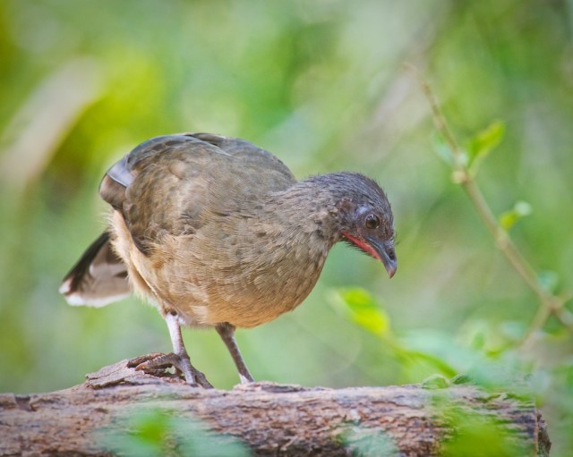 Here is one of the chachalaca birds found in south Texas. It is about the size of a chicken and does not fly a lot. They run along the ground and tree branches.