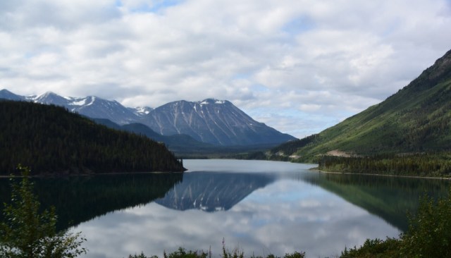 Another lake, this one with a reflection of the many mountains that still have snow.