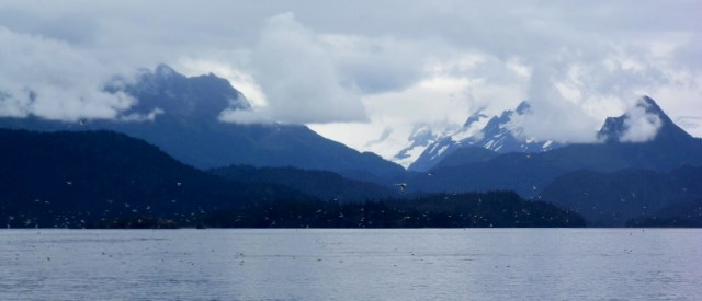 Overcast and some rain on and off during our trip down to Homer today as you can see from the photos. Easier day, only about 185 miles. Had a real treat in Homer, see below.