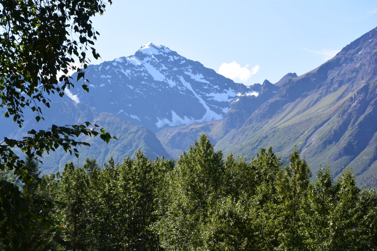 This is a view of one of the snow-covered peaks which can ce viewed from the end of the road.