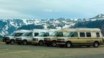 Yesterday was a pretty easy day. Late in the afternoon Joe Morales lead a group of Roadtrek up to the rest area at 9,100 feet and to show how to photograph the Roadtrek. While we were up there someone noticed a bear sow and two cubs down below the rest area and we had a chance to get an image of them. Below is one of the photographs of the way Joe stages a big group of Roadtrek to photograph.