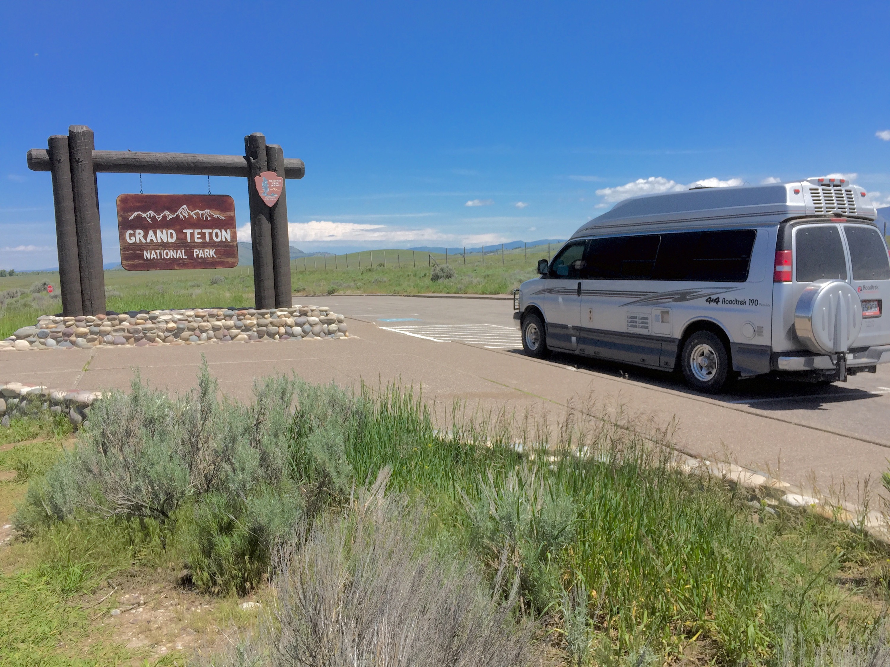 Below is an images of Geraldine II by the entry sign to the Grand Tetons.