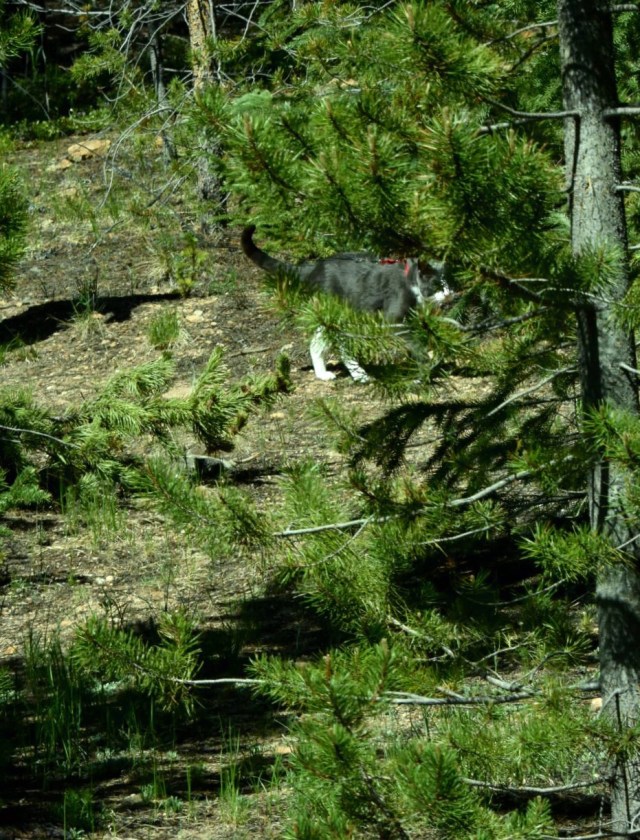 Our cat Mittens on the hunt for a mountain lion he can challenge. π