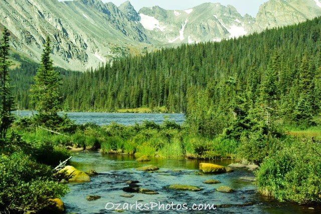 This view is from the hiking trail. The Rocky Mountains in the background, forest, Long Lake with the stream that exits from it in the foreground. We have truly enjoyed our stay in the Pawnee Campground. It is near Ward, Colorado which is just off the Peak to Peak Scenic Byway. We hope to get reservations here next summer.