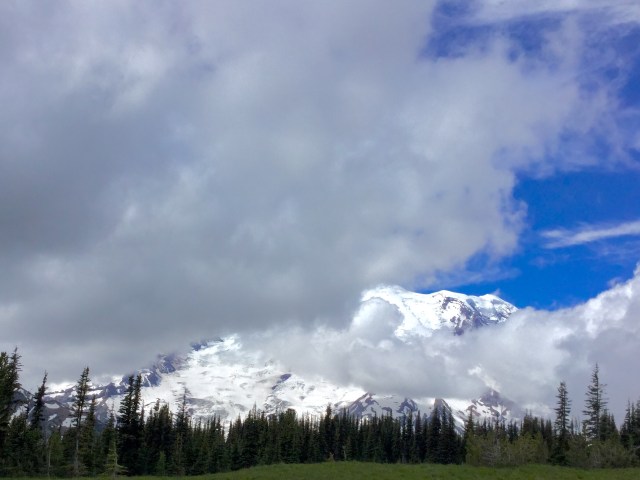 This morning we drove up to the Sunrise lookout parking area. Mount Rainier was mostly covered by clouds as it has been for the last couple of days.