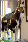 Below are a miniature horse model with real horse hair and a miniature wagon replica.
