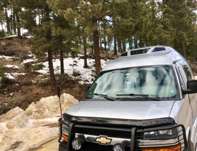 The final image is of our Roadtrek at Mt. Lemmon showing some snow in the background.