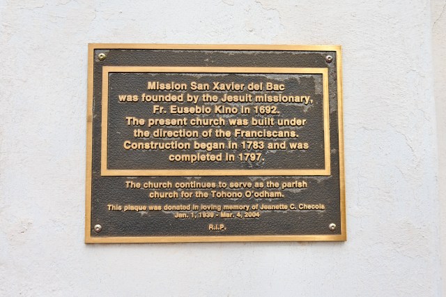 Today we visited one of the historical sites near Tucson, Arizona. The Mission San Xavier Del Bac. Below is a plaque detailing more information about the Mission.