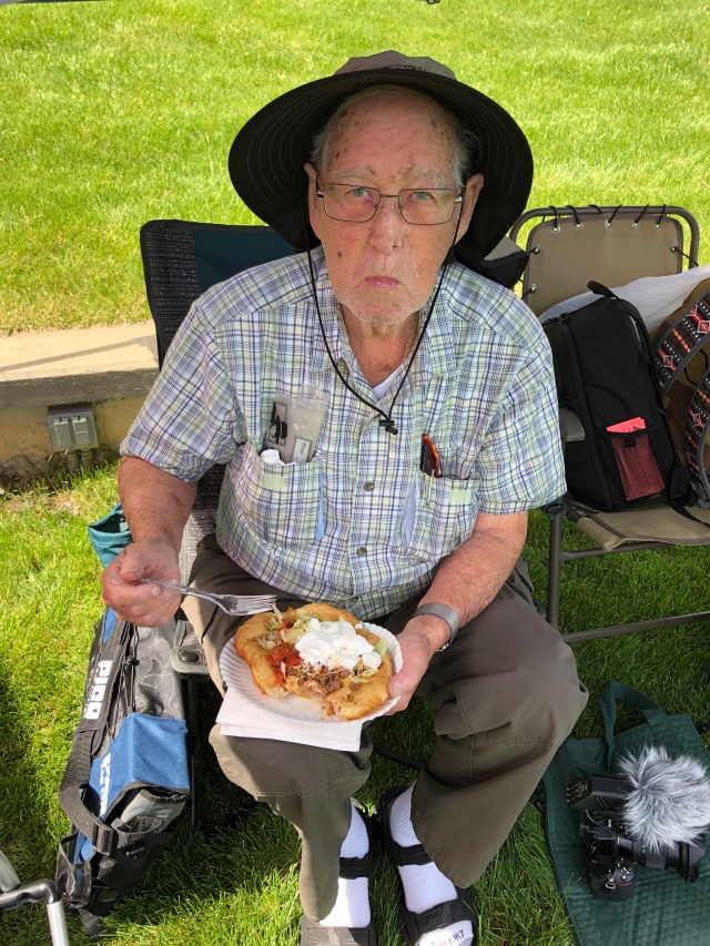 In addition to Native American works being offered for sale there was also food. One item offered we had to try, an Indian Taco. I can attest it was delicious!