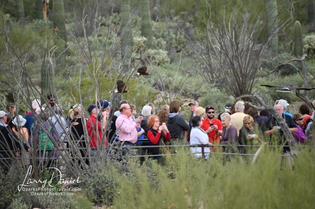 Below is a video taken from a viewing platform of the flight of a family of Harris Hawk’s. This will give you an idea of how close the birds come to the crowd and how large the crowd is which came to enjoy the raptor flight. The website for the museum is https://desertmuseum.org and is well worth looking at.